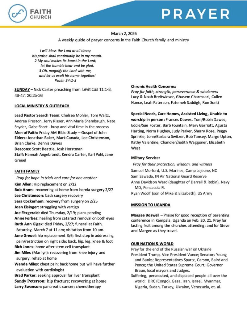 Prayer 2026 MAR 2