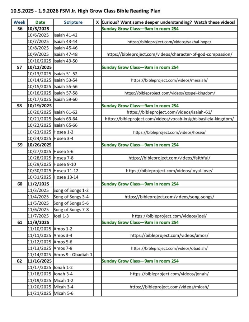 FSM Jr. High Grow Class Bible Reading Plan – with links – 5 – Oct-Jan